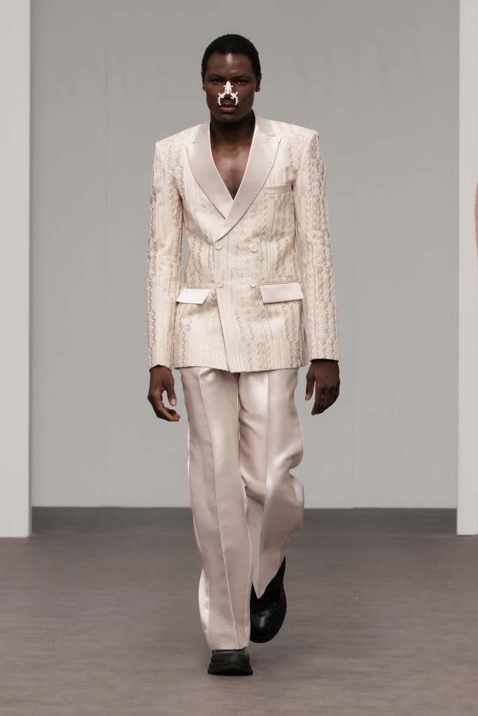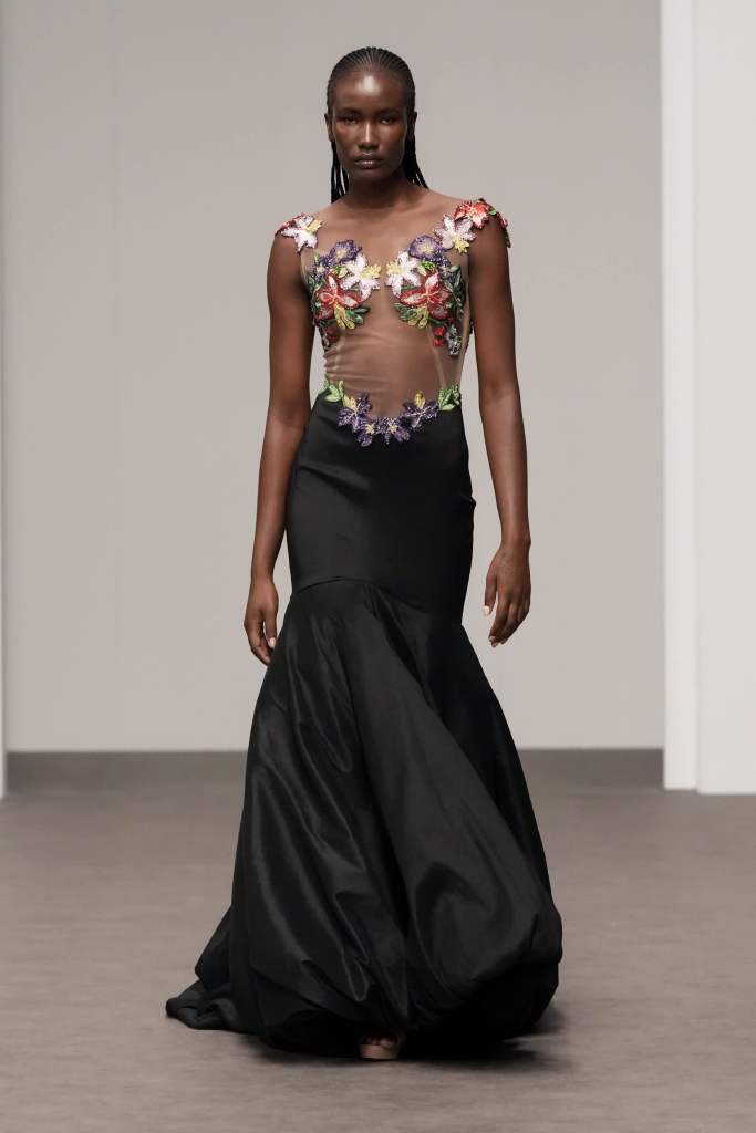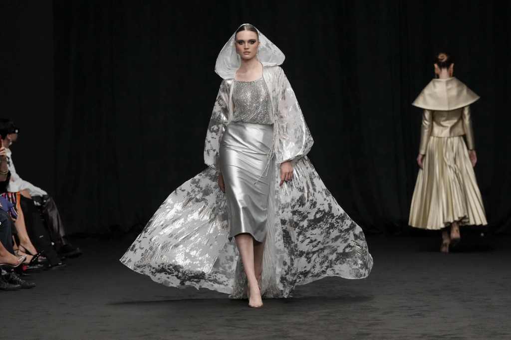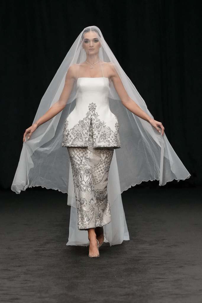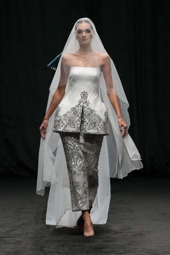 Malaysian design duo to the stars Rizman Ruzaini opened DFW with their SS25 collection, ‘Mustika,’ inspired by the 1999 film “Perempuan Melayu Terakhir” (The Last Malay Woman). The collection pays homage to Malaysia’s rich cultural heritage, with the kebaya a central piece symbolizing tradition and elegance. Creative Director Ruzaini Jamil drew inspiration from a photograph of his late grandmother, Tok Puteh Surin, sparking a nostalgic journey reviving 1950s elegance. The collection also highlights traditional batik motifs, translated into modern designs with intricate embroidery and tambour beading, showcasing Rizman Ruzaini’s dedication to preserving and evolving Malaysia’s sartorial heritage on the global stage. The brand, founded in 2005, is committed to putting Malaysia on the world fashion map, focusing on sustainability and expansion into new markets.