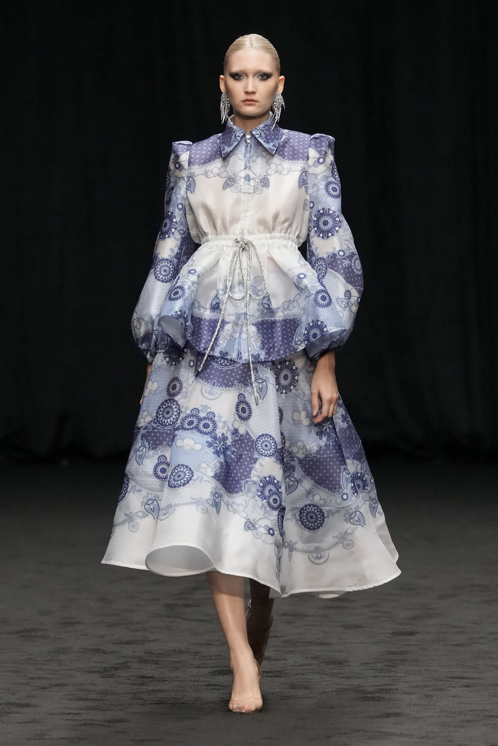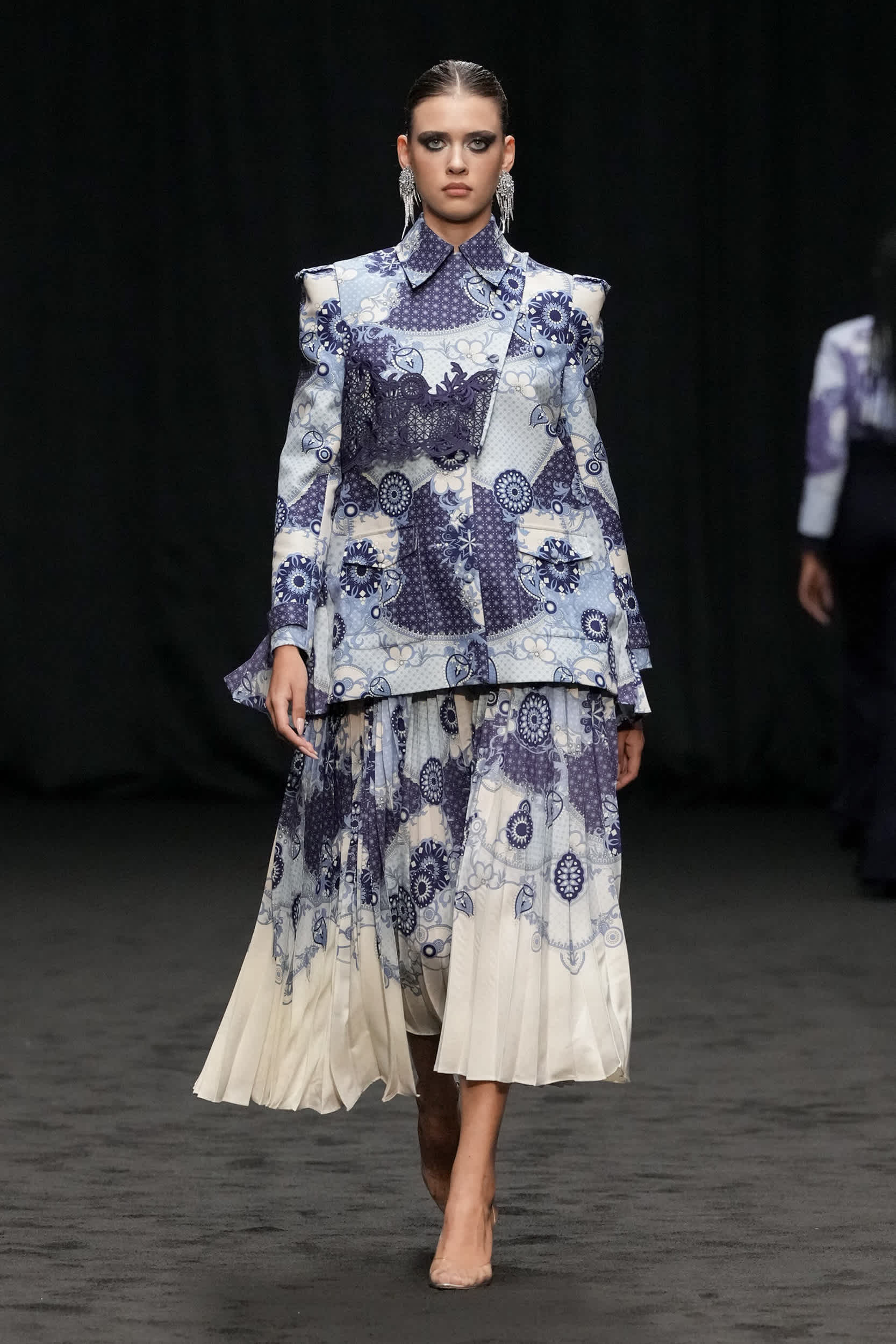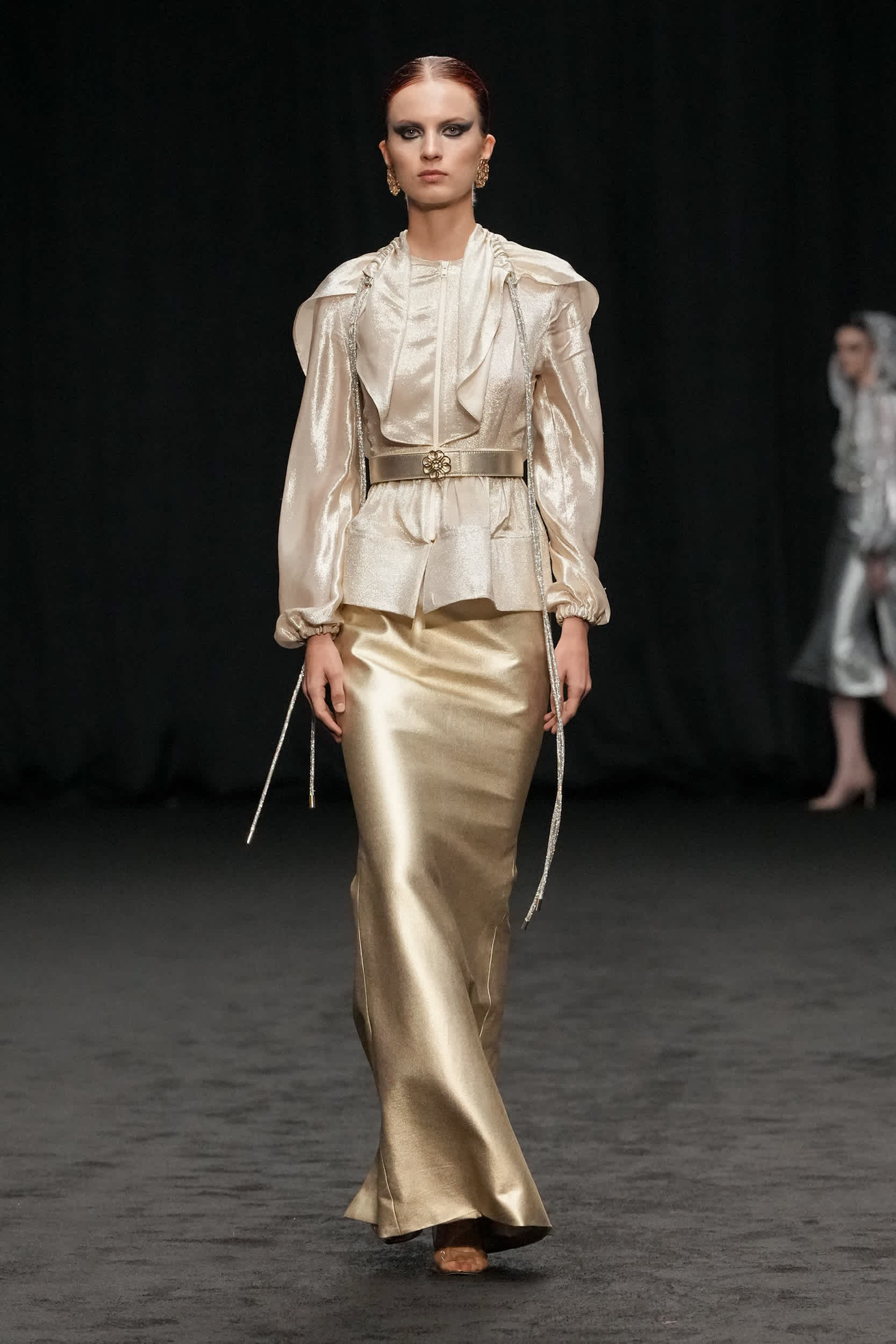 Malaysian design duo to the stars Rizman Ruzaini opened DFW with their SS25 collection, ‘Mustika,’ inspired by the 1999 film “Perempuan Melayu Terakhir” (The Last Malay Woman). The collection pays homage to Malaysia’s rich cultural heritage, with the kebaya a central piece symbolizing tradition and elegance. Creative Director Ruzaini Jamil drew inspiration from a photograph of his late grandmother, Tok Puteh Surin, sparking a nostalgic journey reviving 1950s elegance. The collection also highlights traditional batik motifs, translated into modern designs with intricate embroidery and tambour beading, showcasing Rizman Ruzaini’s dedication to preserving and evolving Malaysia’s sartorial heritage on the global stage. The brand, founded in 2005, is committed to putting Malaysia on the world fashion map, focusing on sustainability and expansion into new markets.