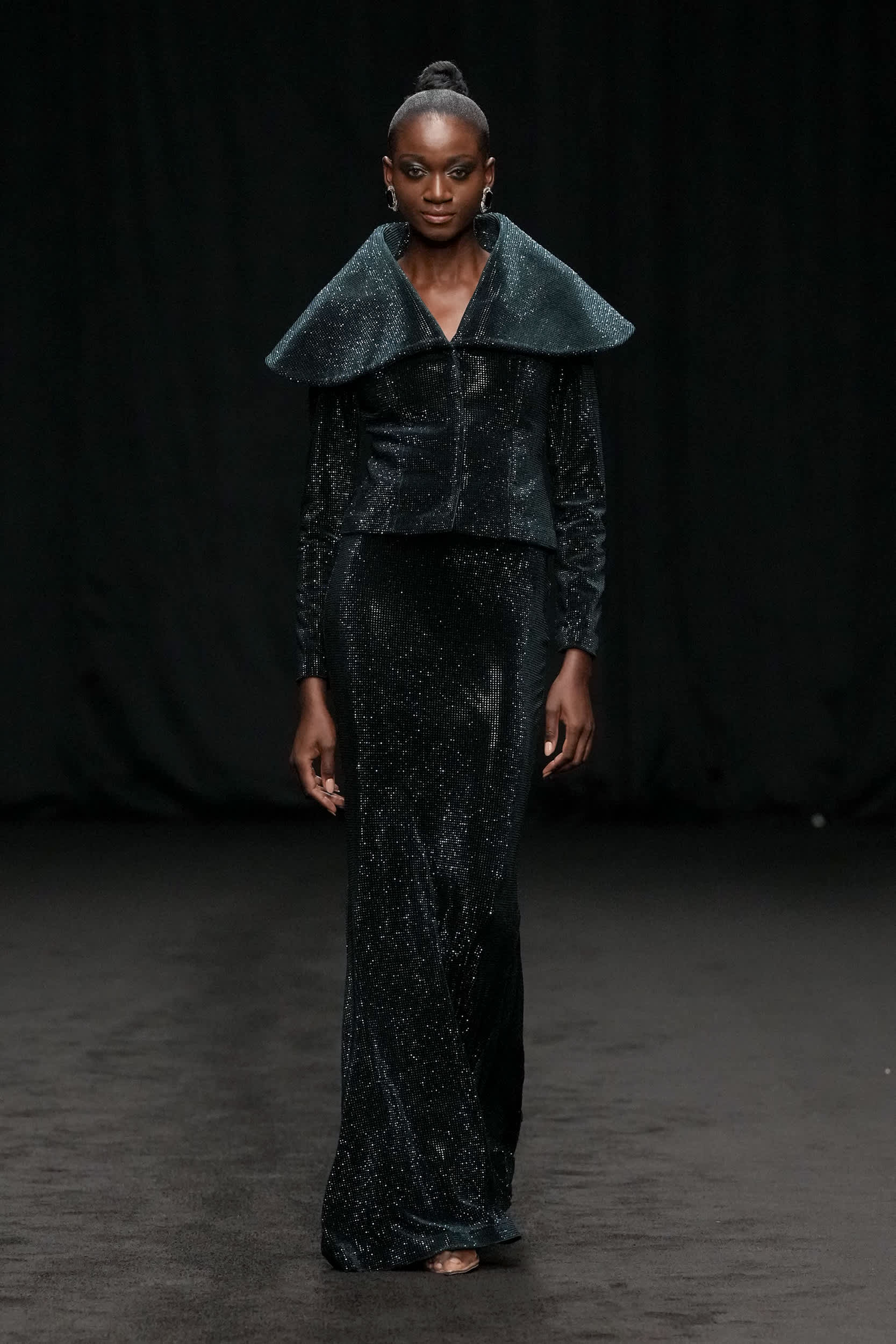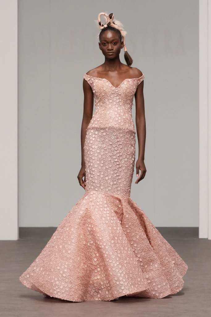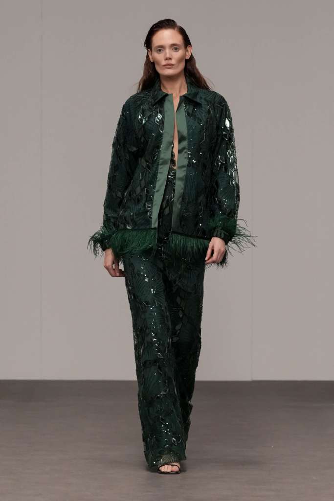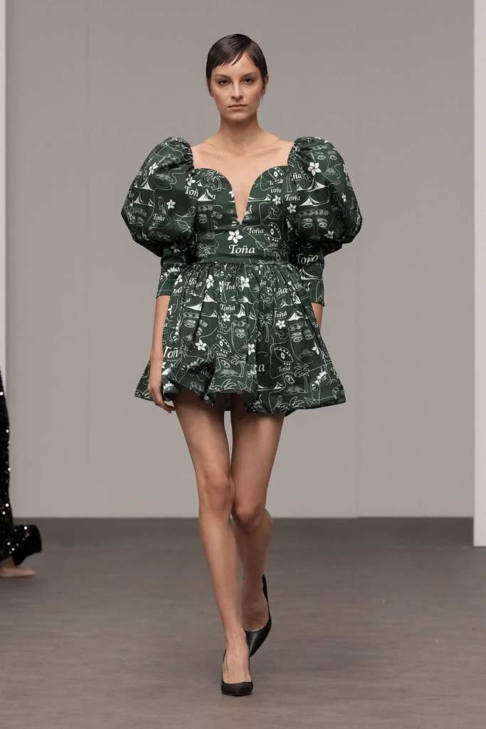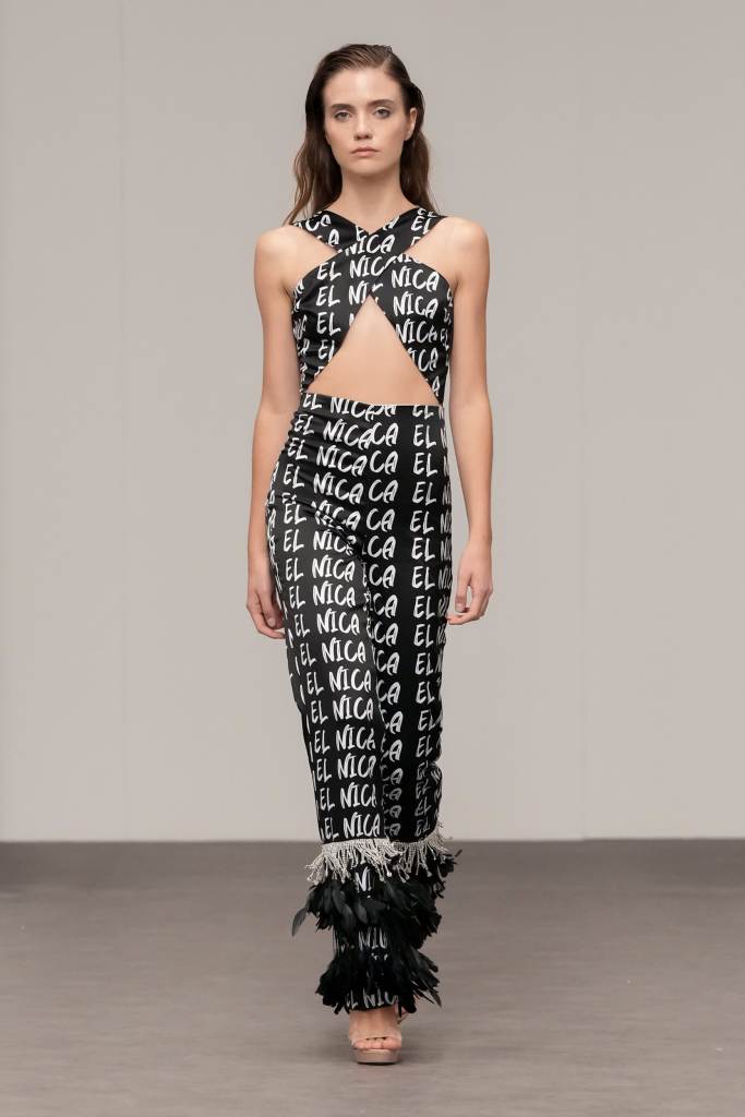 Erick Bendana presented his ‘505’ collection, masterfully merging cultural identity with an urban chic aesthetic. Drawing inspiration from his Nicaraguan roots, the collection showcased prints celebrating traditional dances and symbols, infusing the runway with a rich sense of Nicaraguan heritage. The presentation culminated in breathtaking evening and bridal gowns, capturing the romantic elegance that defines the Erick Bendana brand.