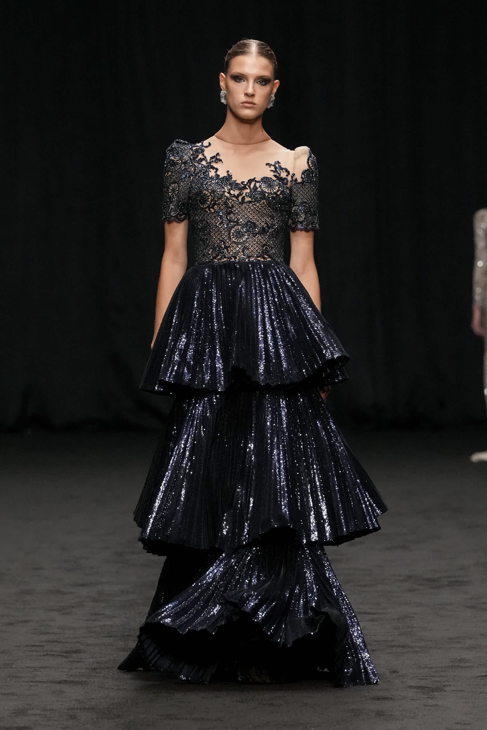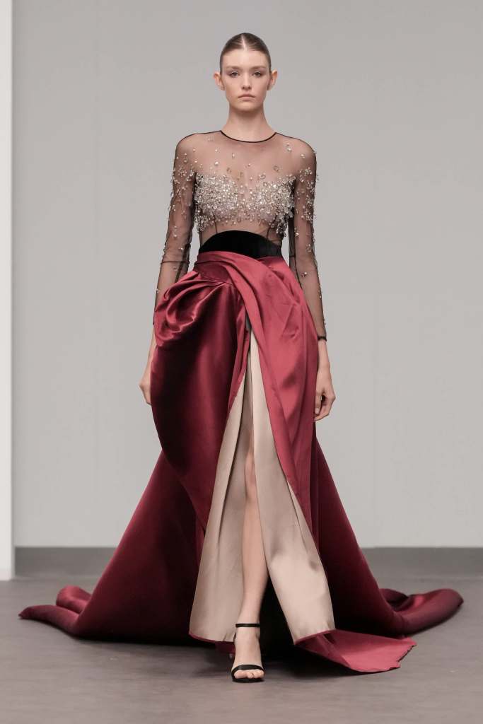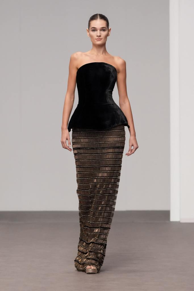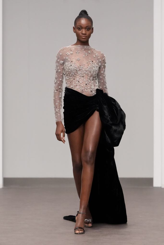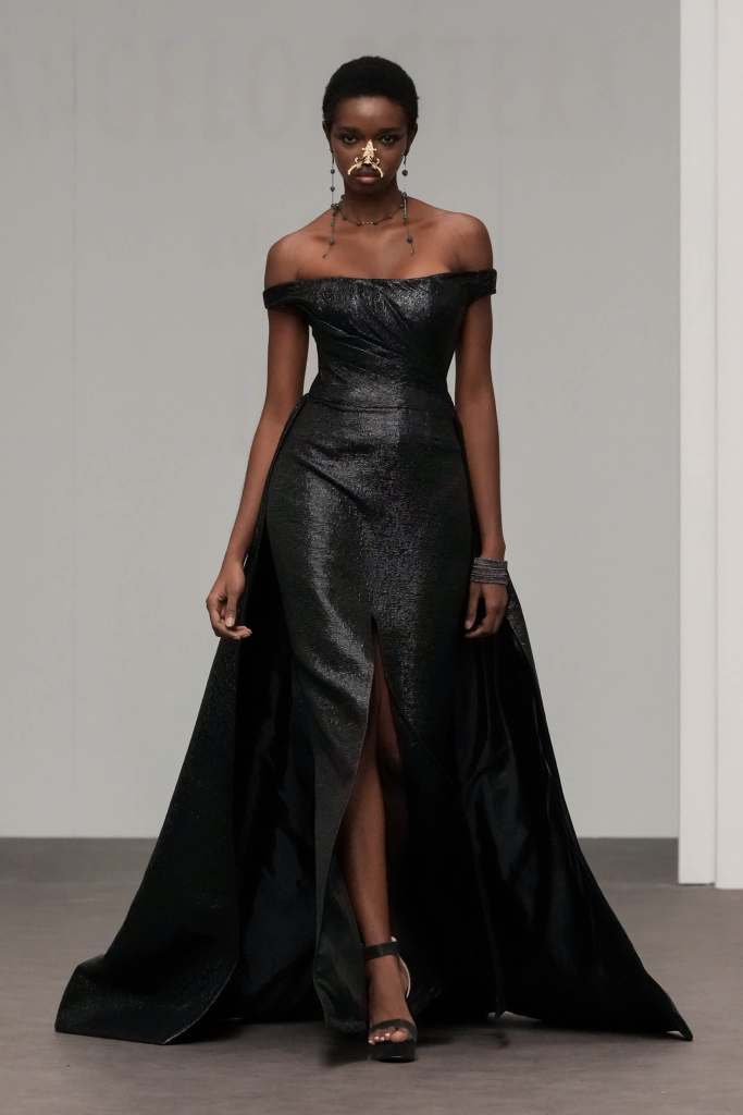 Libyan designer Amjad Khalil, who is regarded as one of the pioneers of the fashion industry in North Africa, showcased his ‘ Beyond Black ’ haute couture collection, leaving the audience captivated. Each piece displayed on the runway represented a chapter of transformation, a journey from darkness to light. Khalil’s designs reflect his personal experiences, with each dress embodying a specific mood he has encountered.