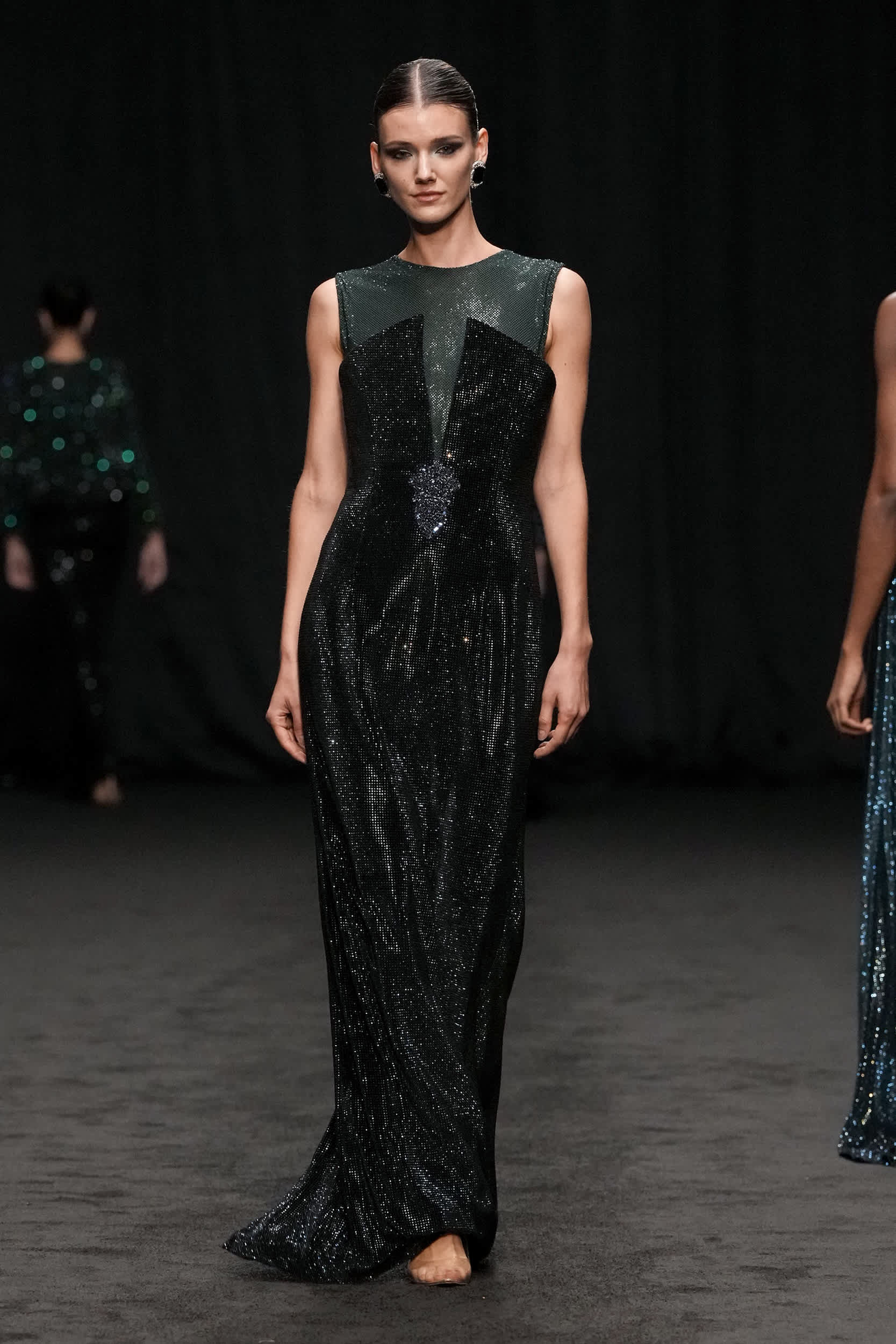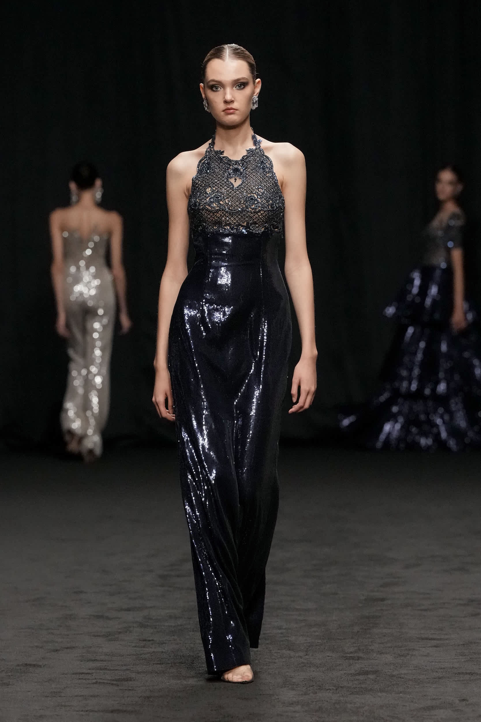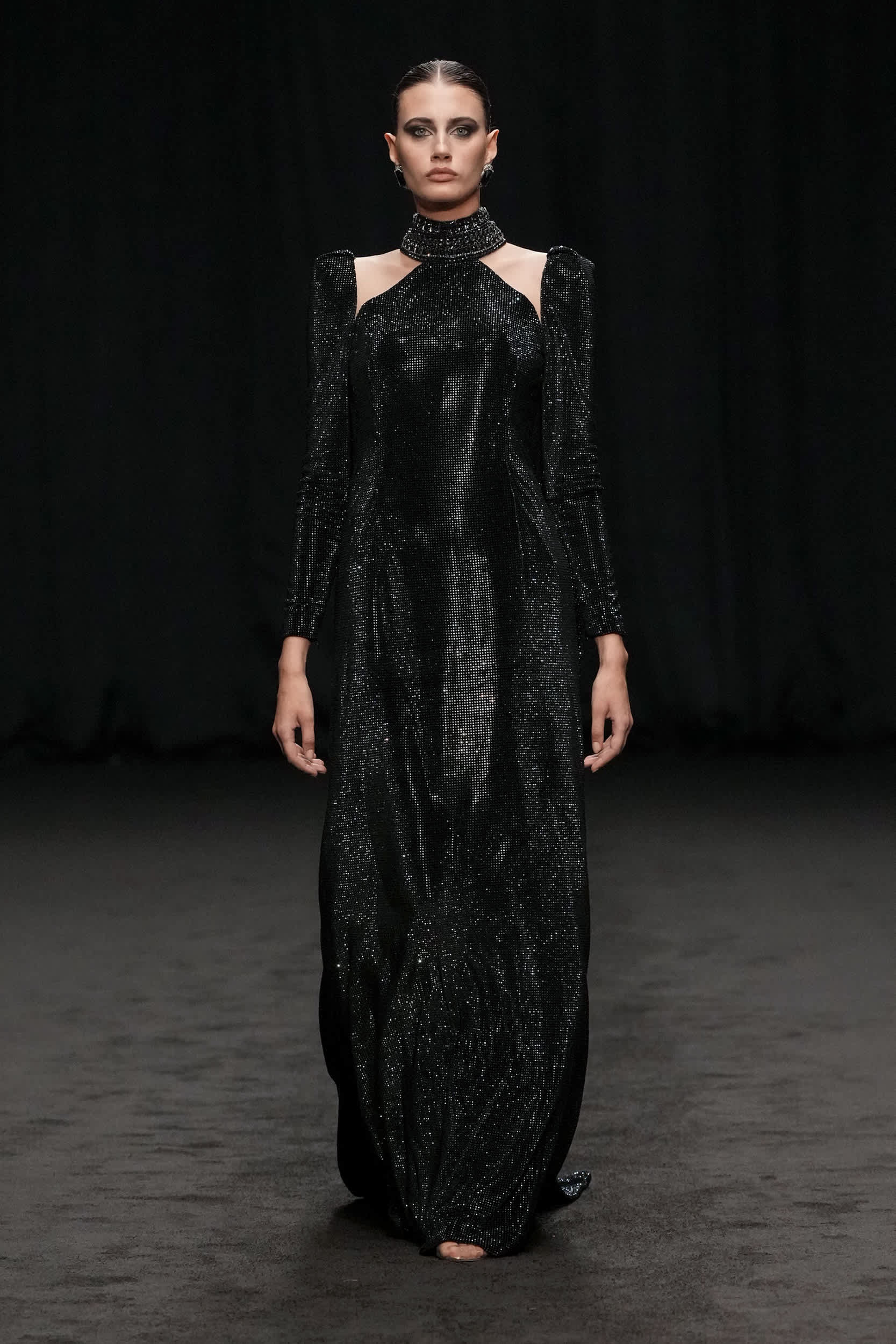Libyan designer Amjad Khalil, who is regarded as one of the pioneers of the fashion industry in North Africa, showcased his ‘ Beyond Black ’ haute couture collection, leaving the audience captivated. Each piece displayed on the runway represented a chapter of transformation, a journey from darkness to light. Khalil’s designs reflect his personal experiences, with each dress embodying a specific mood he has encountered.